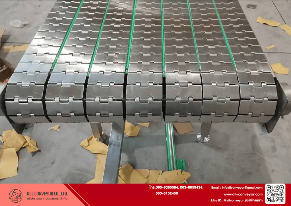 หากสินค้าหนักหรือมีแรงกระแทกสูง ควรเลือก Modular Belt หรือ Roller Conveyor แทน