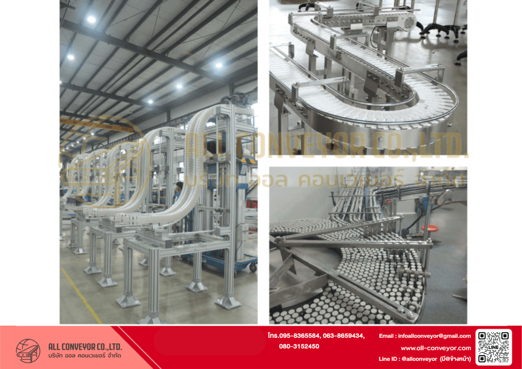 การใช้ Flexible Chain ในระบบโค้งและแนวดิ่งช่วยให้ไลน์ลำเลียงยืดหยุ่น ประหยัดพื้นที่ และออกแบบได้อย่างหลากหลาย เหมาะกับโรงงานอาหาร เครื่องดื่ม บรรจุภัณฑ์ และอิเล็กทรอนิกส์ หากออกแบบอย่างถูกต้องและติดตั้งอุปกรณ์เสริมครบ ระบบจะทำงานได้ราบรื่นและมีอายุการใช้งานยาวนาน