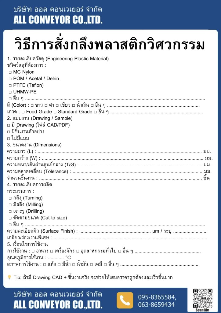 วิธีการสั่งซื้อ กลึงพลาสติกวิศวกรรม
