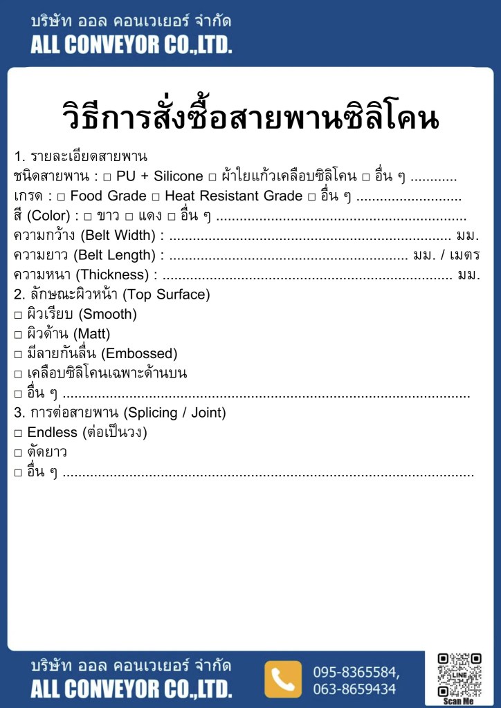 วิธีการสั่งซื้อสายพาน Silicone Belt